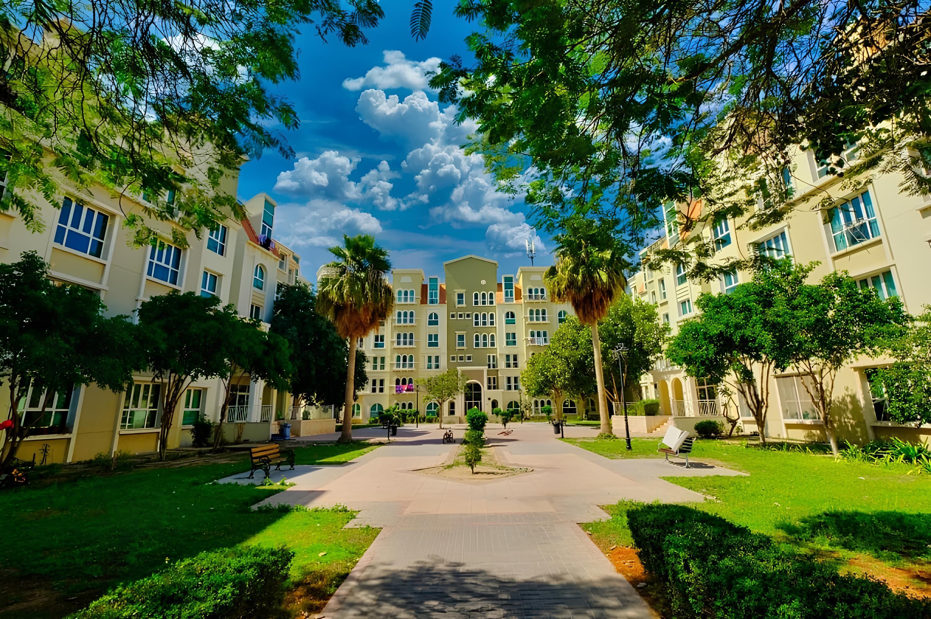 An established garden community near Ibn Battuta Mall featuring affordable apartments in themed garden clusters.