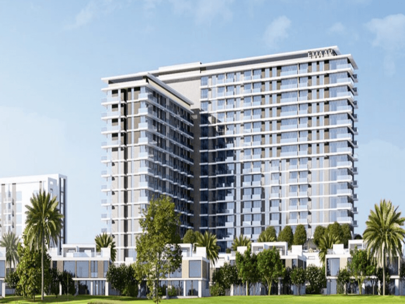 Golf Grand is a luxury residential building developed by Emaar in Dubai Hills Estate, offering 1 to 3-bedroom apartments with views of the Dubai Hills Golf Course. The 15-storey tower is scheduled for completion in Q1 2027 and features amenities like an infinity pool, gym, kids' play area, and outdoor lawn with BBQ space.