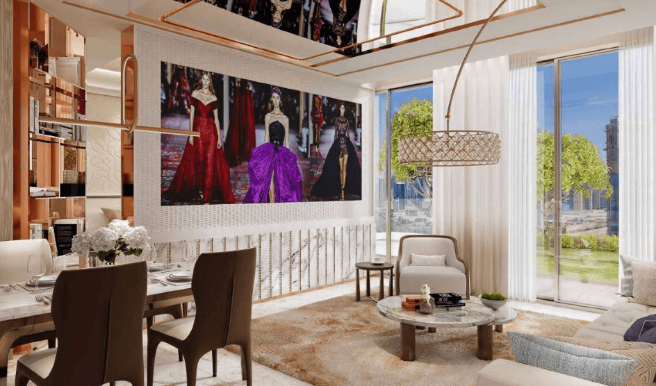 The residence offers 2 bedrooms, 2 bathrooms, a balcony, and 1,083 sqft of luxury living space. It comes fully furnished with designer-branded interiors by Zuhair Murad, reflecting world-class elegance and sophistication. Situated on a high floor with premium views, this unit provides not just a home, but a true lifestyle statement.