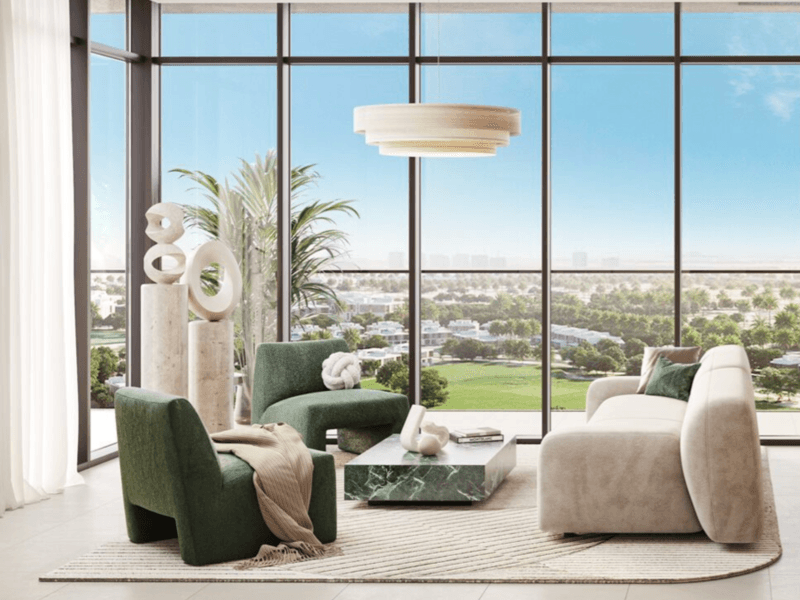 Golf Grand is a luxury residential building developed by Emaar in Dubai Hills Estate, offering 1 to 3-bedroom apartments with views of the Dubai Hills Golf Course. The 15-storey tower is scheduled for completion in Q1 2027 and features amenities like an infinity pool, gym, kids' play area, and outdoor lawn with BBQ space.